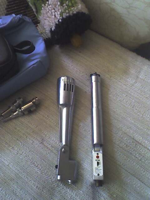 he also hooked me up with the mics he used for calling. i haven't done any looking around to see what's up with these things. they sound great though, really nice heavy vintage stuff: