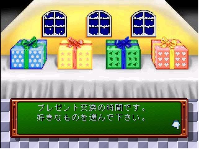 My tokimeki love rival Rei threw a XMAS BASH at his mansion. I picked the present on the far left and scored some kind of book. Totally worthless and the punch wasn't even spiked.
