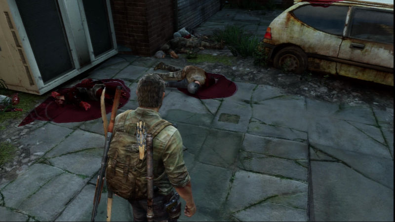 I clarify this a bit later on, but I don't actually see TLoU as evincing a kind of realism so much as a kind of "magical realism" in terms of its violence. This has a convenient element of accommodating a little fudging on the overlap between verisimilitude of cutscene-world and gameplay, though it's more a convenience born of accident than an intentional justification of when they desync.